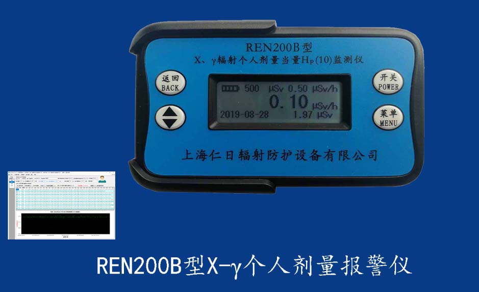 REN200型X、γ個人劑量報警儀(又叫X、γ輻射個人劑量當量HP(10)監測儀)內置高靈敏度蓋格計數管為探測器,主要用來監測各種放射性工作場所的X、γ以及硬β射線的輻射,具有響應快,測量范圍寬的特點。能顯示工作場所的劑量當量率和累積劑量,更換電池時,日期及累積數據能永久保存?蛇x配RenRiPersonal個人劑量管理軟件,該軟件可存儲多個人的歷史數據,能記錄日累積、月累積、年累積、輻照時長、計算平均劑量率、扣除或不扣除本底輻射,且以文字和圖譜的方式展現數據。廣泛應用于核電站、加速器、鋼鐵、化工、同位素應用、醫院、工業X、γ無損探傷、放射醫療、鈷源治療、γ輻照、放射性實驗室、核設施周圍環境監測